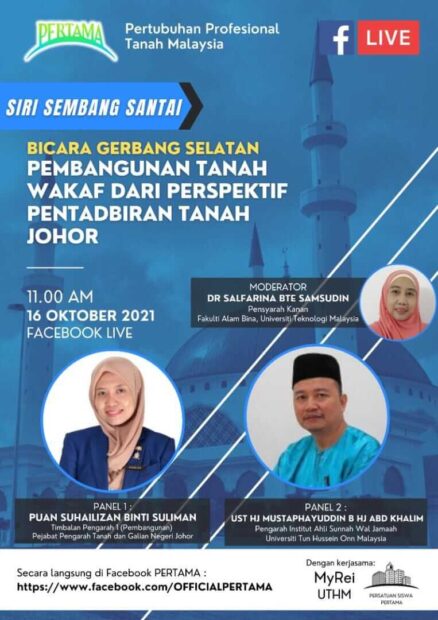 Siaran secara langsung di Facebook Pertubuhan Profesional Tanah Malaysia & Laman Rasmi Pentadbiran Tanah Johor.