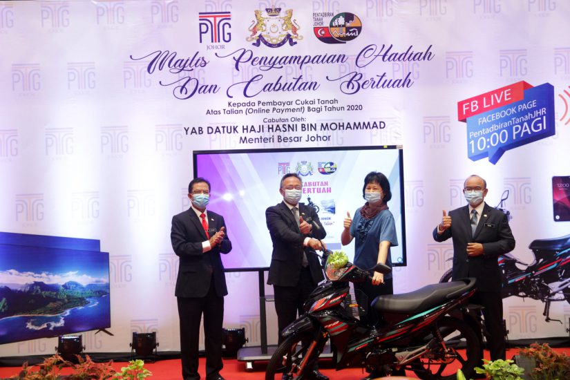 Majlis Penyampaian Hadiah dan cabutan bertuah kepada pembayar cukai tanah atas talian (Johor Online Payment) bagi tahun 2020. Disampaikan khas daripada Yang Amat Berhormat Datuk Haji Hasni bin Mohammad (Menteri Besar Johor)