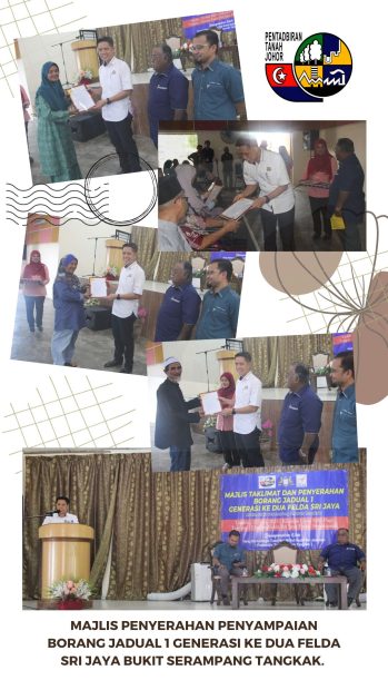 MAJLIS PENYERAHAN PENYAMPAIAN BORANG JADUAL 1 GENERASI KE DUA FELDA SRI JAYA BUKIT SERAMPANG TANGKAK.